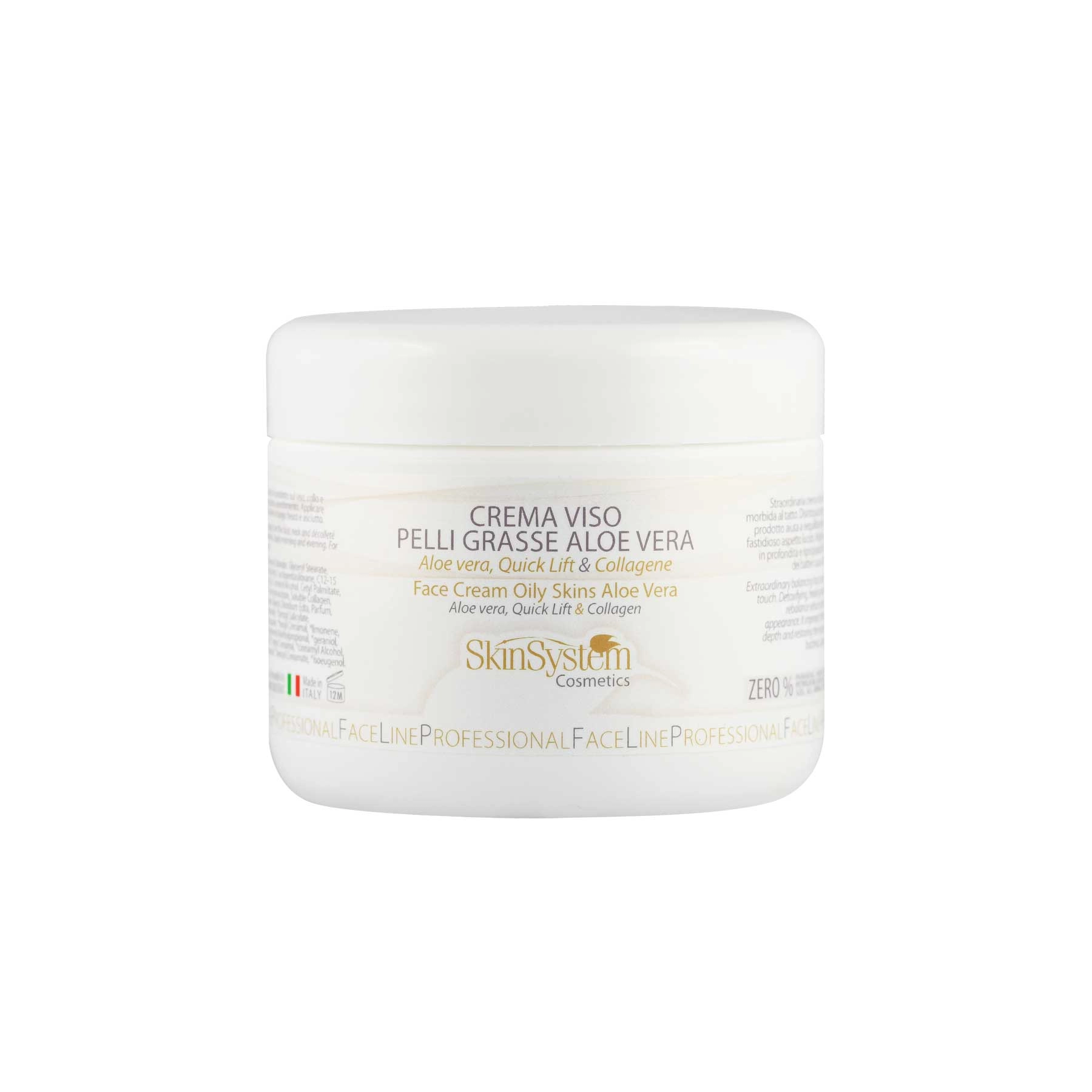 Precious face cream H24 based on Aloe Vera and Collagen with incredible antioxidant and sebum regulating properties. Detoxifying, healing and antibacterial, this product helps to rebalance sebum secretion removing the annoying shiny appearance. It reduces the attack of bacteria, cause of annoying irritations and spots. The synergy between Collagen and the active ingredients of Aloe Vera stimulates the synthesis of new Collagen and Elastin giving tone and elasticity to dermis. Recommended for impure skins treatment.