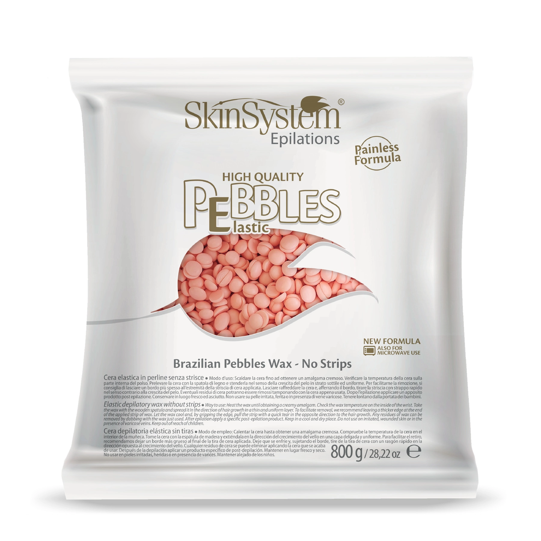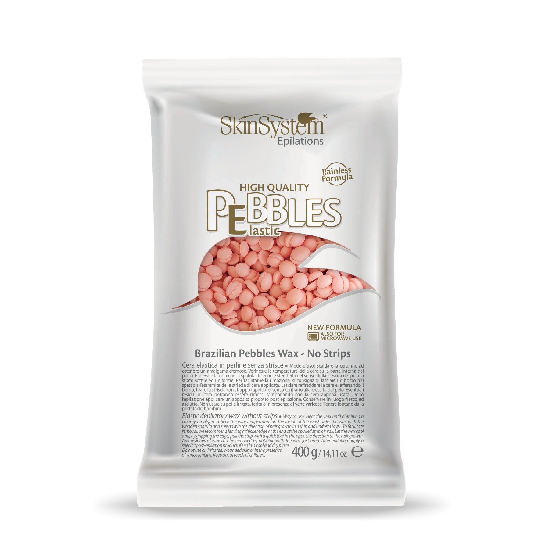 Brazilian Pebbles Wax, the Brazilian wax in beads, safe and Made in Italy, concentrates in small capsules all the effectiveness and delicacy on the skin of SkinSystem products.PEBBLES High Quality PINK CREAM is enriched with Titanium Dioxide in order to guarantee a soft and effective tear while respecting delicate skin. Suitable for small and medium layers, for applications all over the body.The Brazilian Pebbles Wax of SkinSystem are an innovative product born of traditional hair removal methods, reformulated and enriched with precious raw materials.- Practical and fast, easy to use and disposable- Dermatologically tested, respectful of even the most delicate skin- Multidirectional, effective and widespread, it does not require double passes- Incorporates the hair with precision and tenacity, does not stick to the skin for painless hair removal- Melts at low temperature for maximum comfort on the skin- Avoids the formation of folliculitis and irritation- Slows down regrowth, reducing the number and diameter of hair and extending the time between one waxing and another- Can be removed without strips, for greater freedom of movement, also ideal for private parts and small parts- Leaves the skin smooth and silky for more than 3 weeksIngredients / inci
