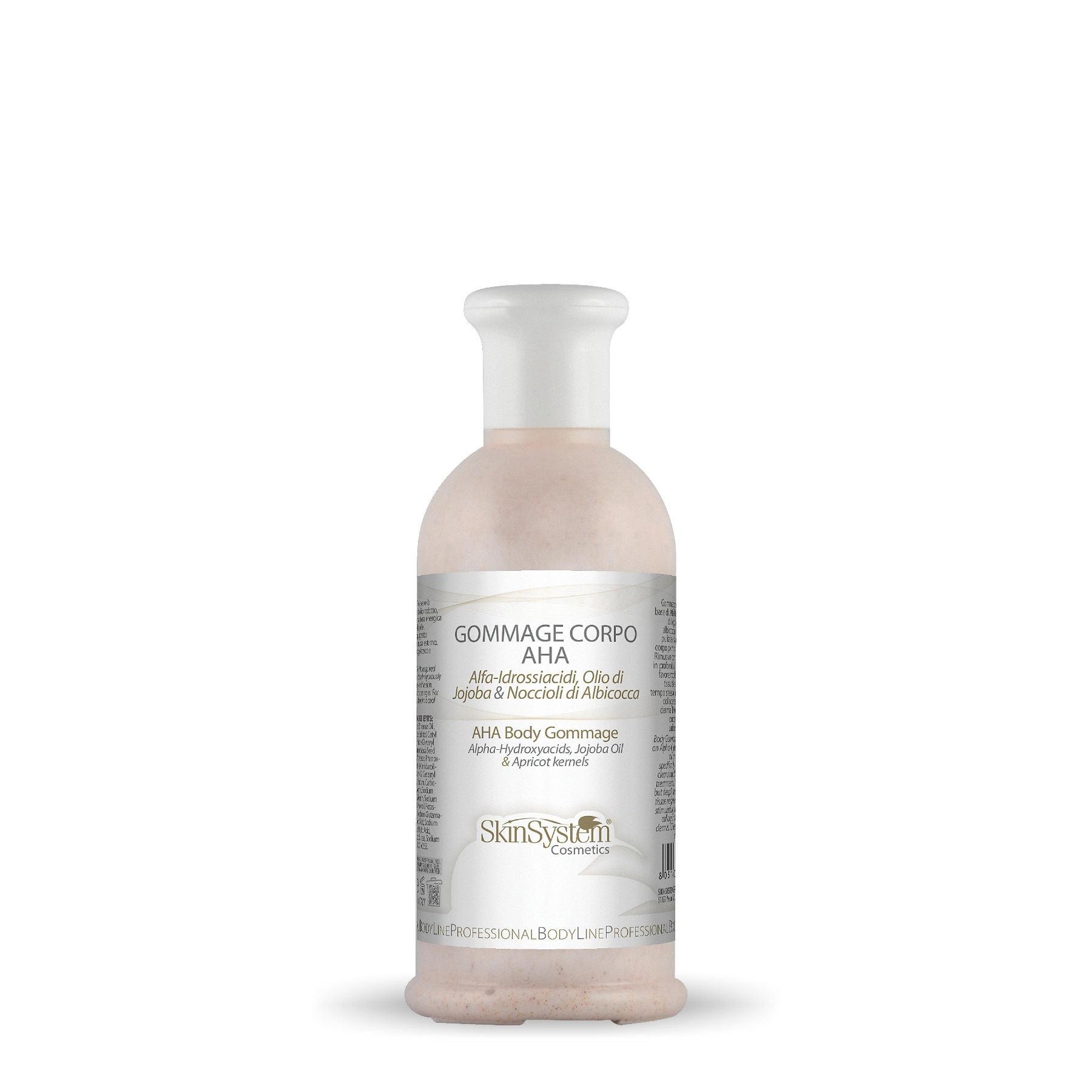 Body Gommage cream-based on Alpha-Hydroxyacids, jojoba oil and apricot kernels specifically for cleaning and cleansing of the body before treatments.