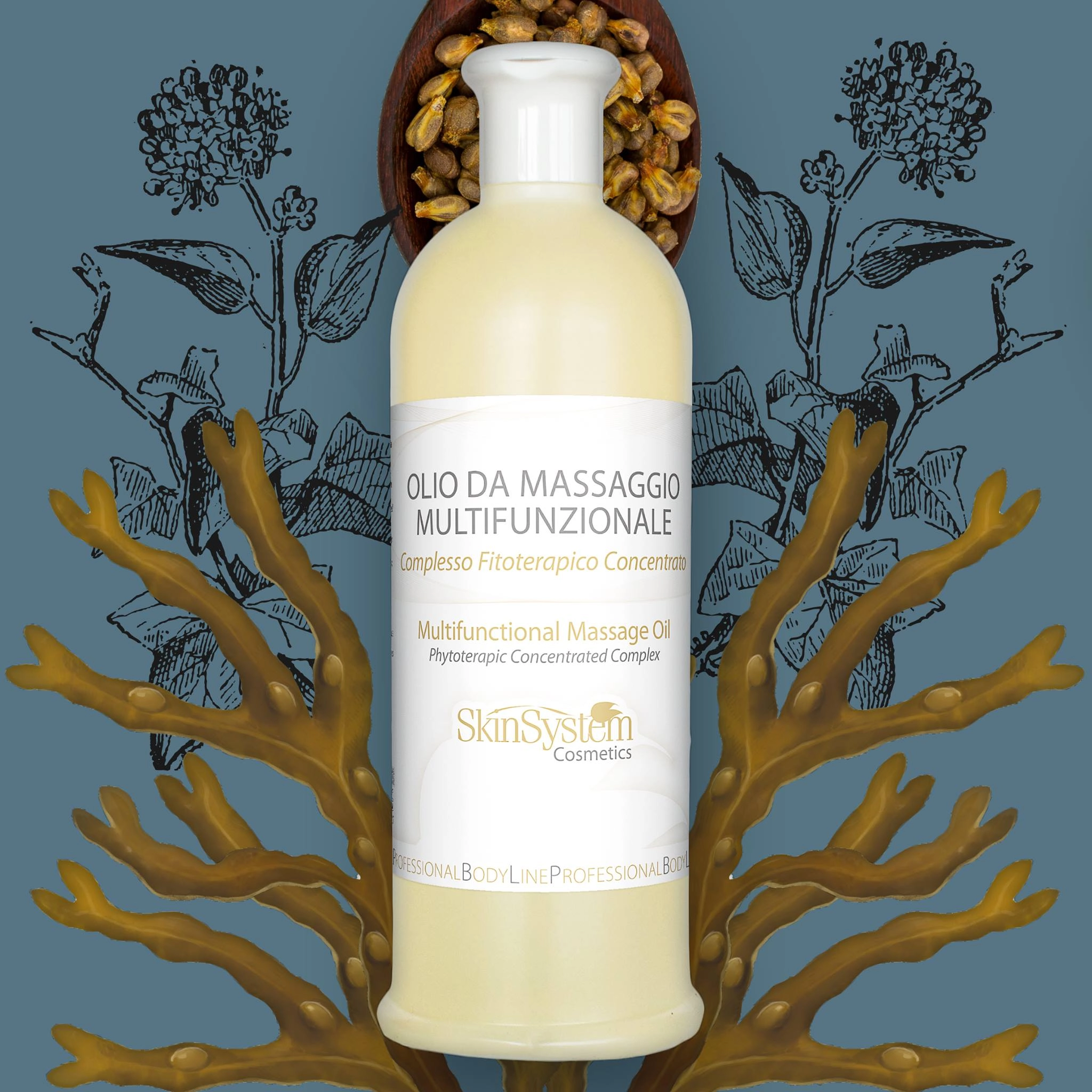 Functional massage oil specific for the treatment of blemishes caused by sagging skin.Ingredients / inci